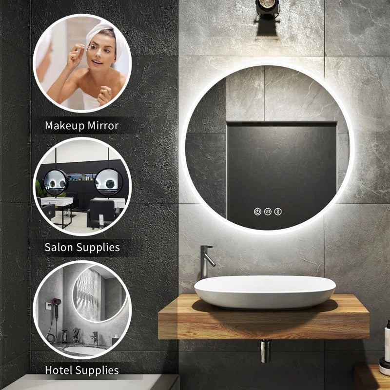 Epperly Led-Round-Bathroom-Mirror/ Led-Mirror/ Defogging/ Bluetooth Speakers/ Dimmable/ Color Adjustable